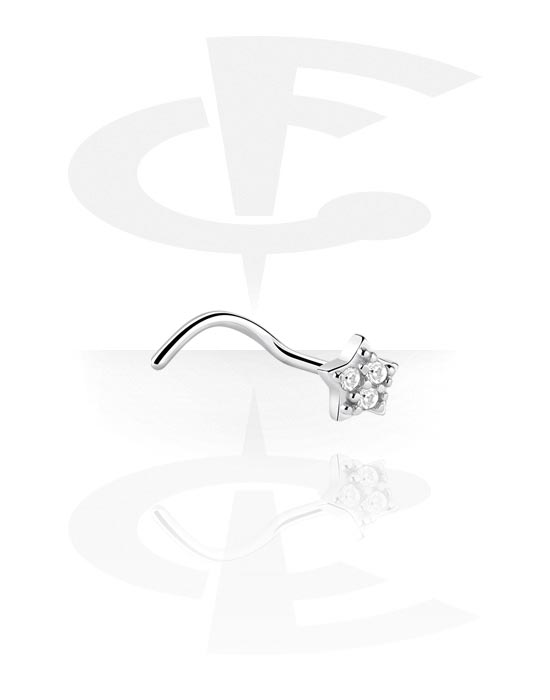 Curved nose stud (surgical steel, silver, shiny finish) with star attachment and crystal stones