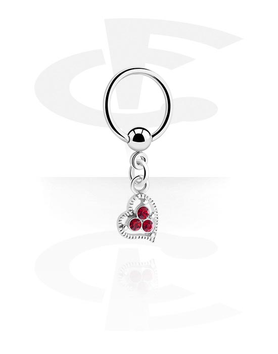 Ball closure ring (surgical steel, silver, shiny finish) with heart charm and crystal stones