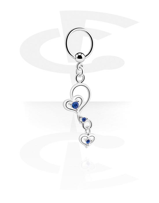 Ball closure ring (surgical steel, silver, shiny finish) with charm and crystal stones