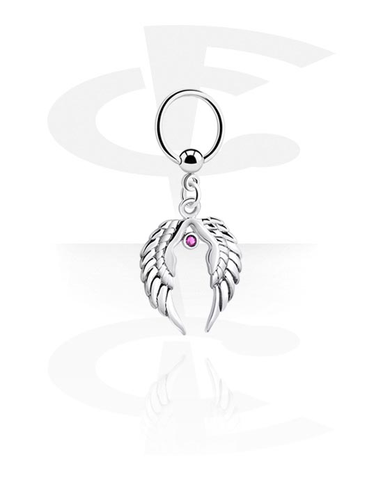 Ball closure ring (surgical steel, silver, shiny finish) with wing charm and crystal stone