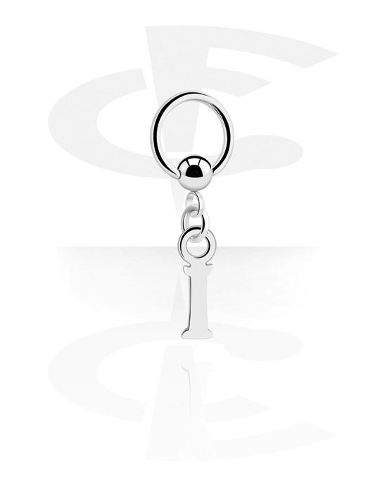 Ball closure ring (surgical steel, silver, shiny finish) with charm with letter "I"