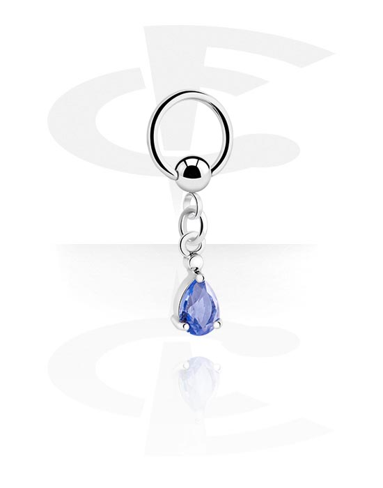Ball closure ring (surgical steel, silver, shiny finish) with charm and crystal stone