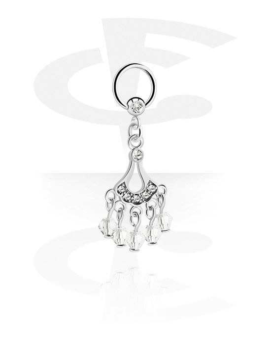 Ball closure ring (surgical steel, silver, shiny finish) with crystal stone and charm