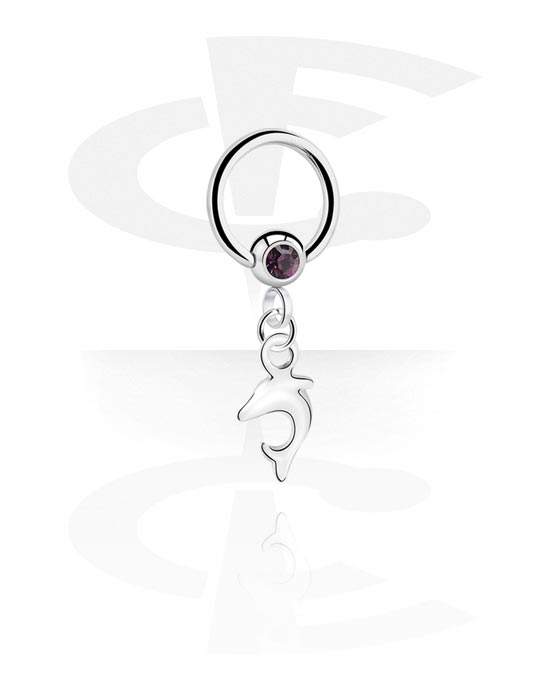 Ball closure ring (surgical steel, silver, shiny finish) with crystal stone and dolphin charm