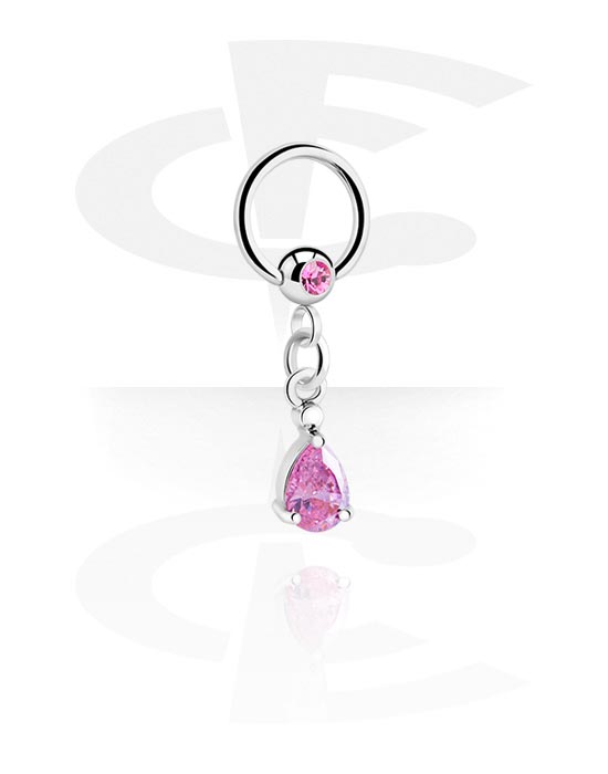 Ball closure ring (surgical steel, silver, shiny finish) with crystal stone and charm