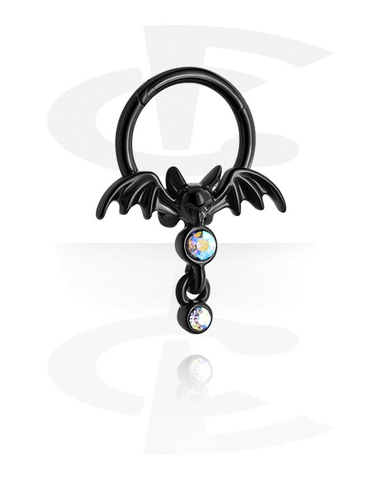 Piercing clicker (surgical steel, black, shiny finish) with bat design and crystal stones