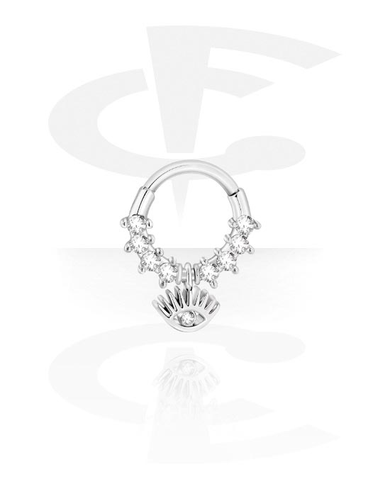 Piercing clicker (surgical steel, silver, shiny finish) with eye design and crystal stones