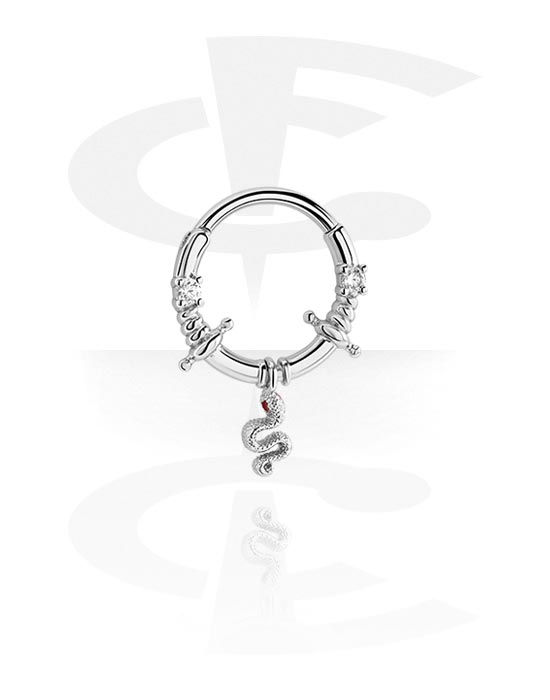 Piercing clicker (surgical steel, silver, shiny finish) with snake design and crystal stones
