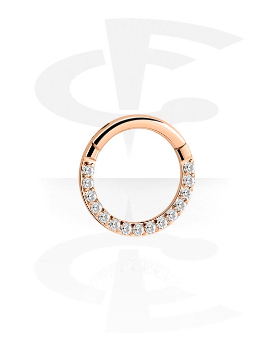 This hinge segment ring is made from rosé gold-plated surgical steel and is almost entirely set with wonderful, sparkling crystal stones that make this piercing a real highlight.