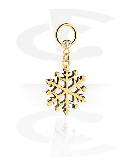 Ball closure ring (surgical steel, gold, shiny finish) with crystal stone and charm