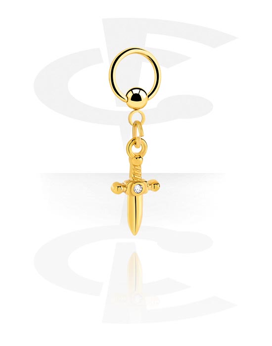 Ball closure ring (surgical steel, gold, shiny finish) with crystal stone and charm