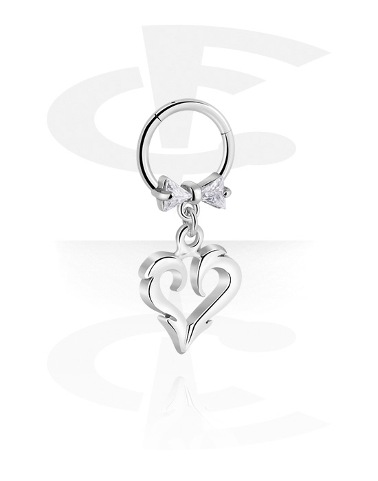 Piercing clicker (surgical steel, silver, shiny finish) with heart charm and crystal stones