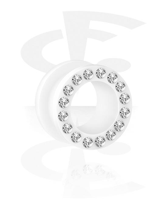 Este túnel Flesh hecho de acrílico negro se complementa con piedras de cristal brillantem y es al mismo tiempo simple , clásico y elegante.
