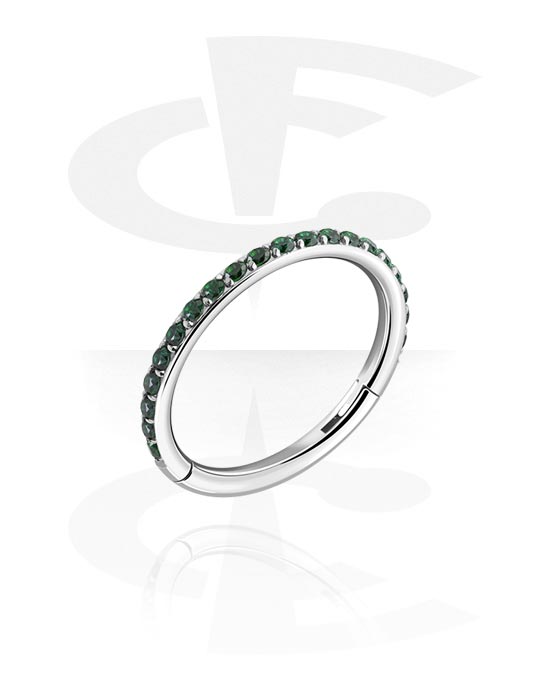 Este segment ring con bisagra está hecho de acero quirúrgico de alta calidad y está cubierto casi por completo de maravillosas y brillantes piedras de cristal que hacen de este piercing un verdadero espectáculo.