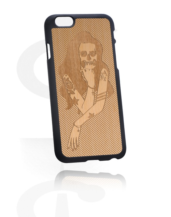 Stylish case for your mobile. This case serves both as eye-catching accessory as well as protection against damages. Plastic cover with a wooden inlay and a delicate engraving.