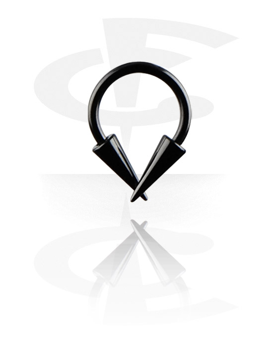 Musta hevosenkenkäkoru, jonka päissä kartiokoristeet. Tällä kertaa ne ovat pitkät ja terävät. Kirurginterästä.