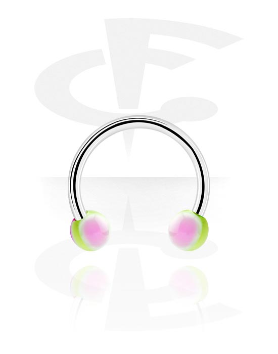 The available gauges are 1.2 mm and 1.6 mm On stock with diameters from 6 mm up to 22 mm. The ball of this piercing has a sizes ranging from 2.5 mm to 8 mm. colour: Blue/Green all the way to Red/Purple. You decide what matches your style. This is just a classy product! Order right now!