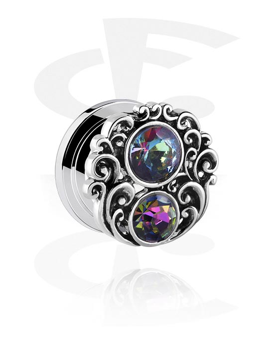 Ruuvattava tunneli (kirurginen teräs, hopea, kiiltävä pinta) kanssa vintagedesign ja kristallikivet