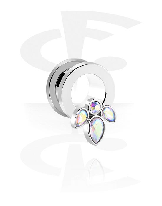 Ruuvattava tunneli (kirurginen teräs, hopea, kiiltävä pinta) kanssa kristallikivet