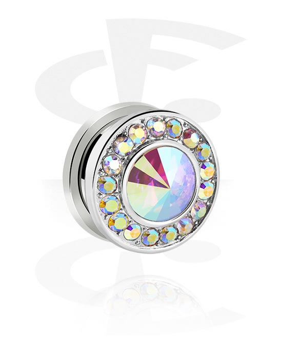 Ruuvattava tunneli (kirurginen teräs, hopea, kiiltävä pinta) kanssa kristallikivet