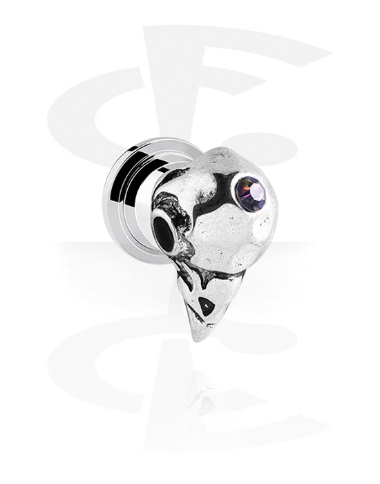 Ruuvattava tunneli (kirurginen teräs, hopea, kiiltävä pinta) kanssa lintudesign ja kristallikivi