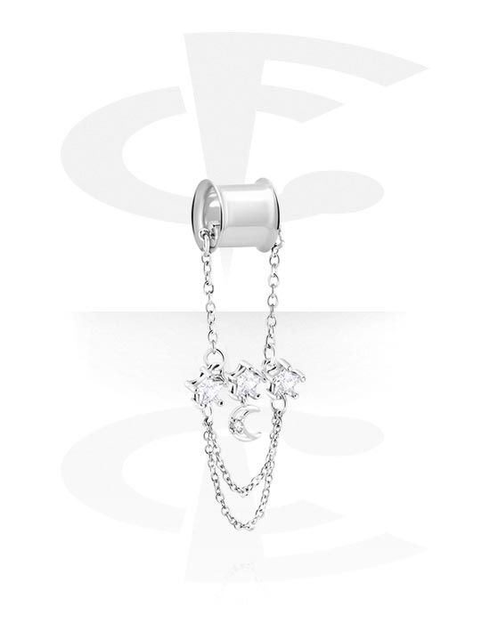 Kaksinkertainen flared-tunneli (kirurginen teräs, hopea, kiiltävä pinta) kanssa Crescent ja kristallikivet