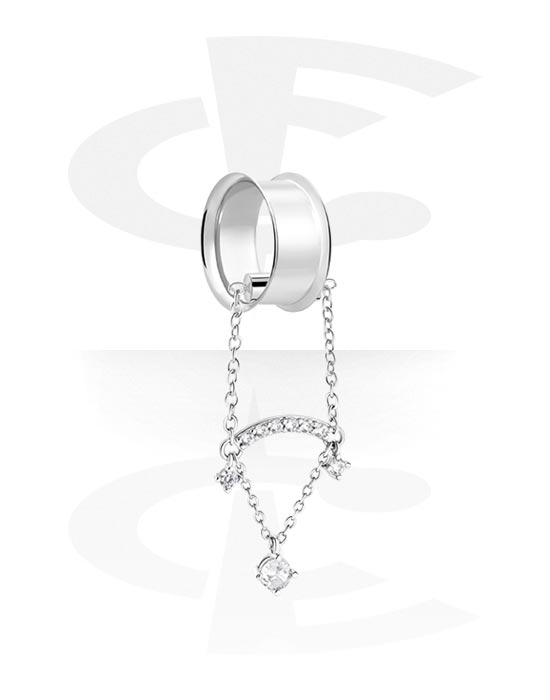Kaksinkertainen flared-tunneli (kirurginen teräs, hopea, kiiltävä pinta) kanssa kristallikivet