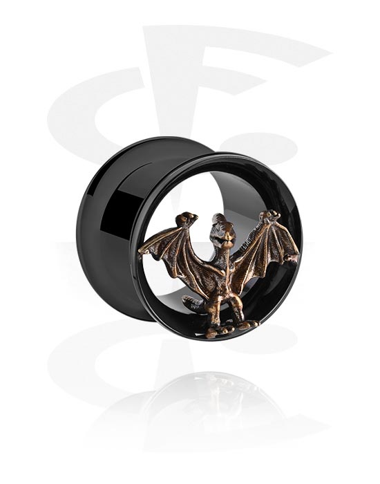 Kaksinkertainen flared-tunneli (kirurginen teräs, musta, kiiltävä pinta) kanssa T-Rex-design