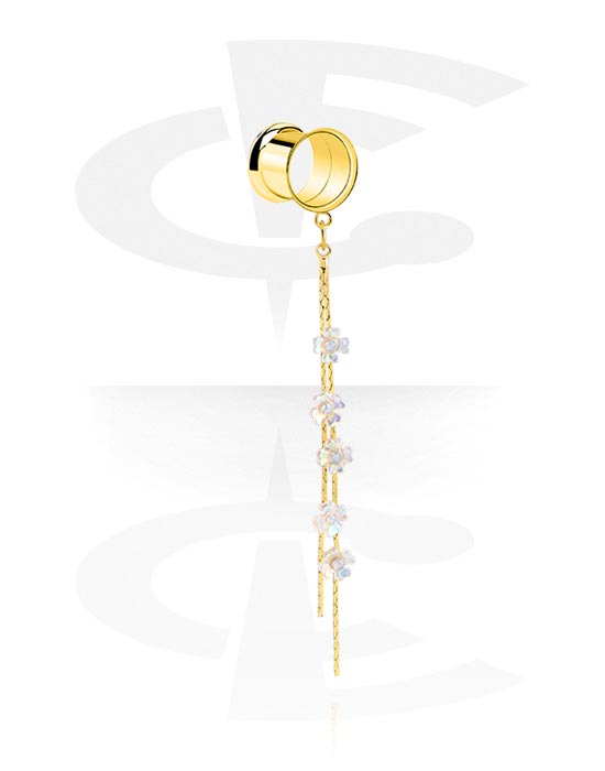 Ruuvattava tunneli (kirurginen teräs, kulta, kiiltävä pinta) kanssa ketju ja kukkariipus