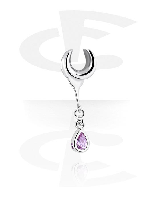 Puolitunneli (kirurginen teräs, hopea, kiiltävä pinta) kanssa kristallikivi