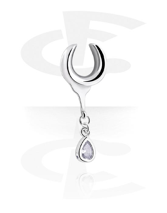 Puolitunneli (kirurginen teräs, hopea, kiiltävä pinta) kanssa kristallikivi