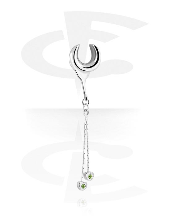 Puolitunneli (kirurginen teräs, hopea, kiiltävä pinta) kanssa sydänriipus ja kristallikivet