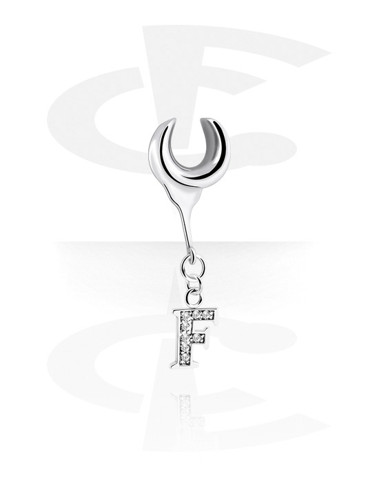 Puolitunneli (kirurginen teräs, hopea, kiiltävä pinta) kanssa riipus jossa F-kirjain