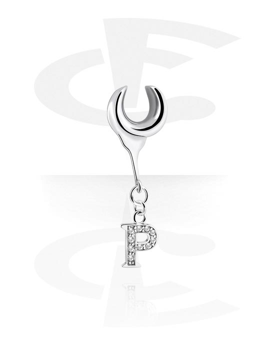 Puolitunneli (kirurginen teräs, hopea, kiiltävä pinta) kanssa kirjainriipus