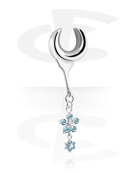 Puolitunneli (kirurginen teräs, hopea, kiiltävä pinta) kanssa kukkariipus ja kristallikivet