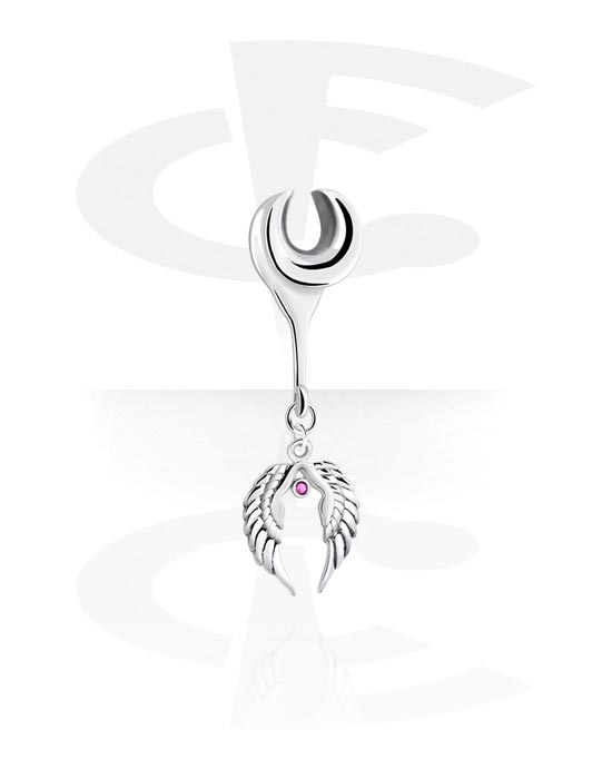 Puolitunneli (kirurginen teräs, hopea, kiiltävä pinta) kanssa siipiriipus ja kristallikivi