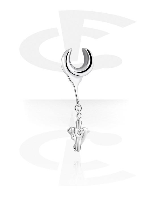 Puolitunneli (kirurginen teräs, hopea, kiiltävä pinta) kanssa ristiriipus ja kristallikivi