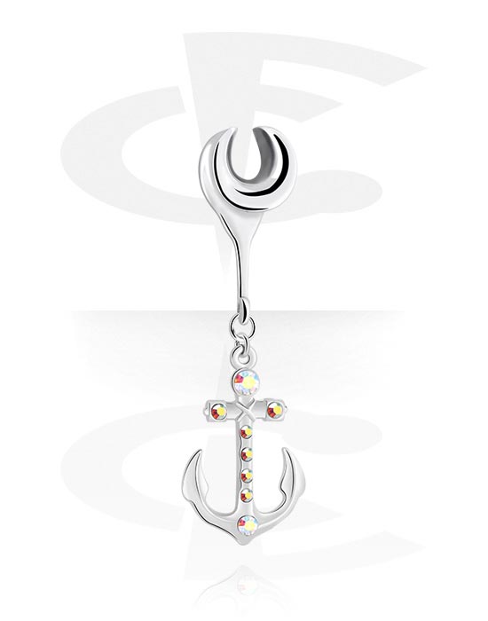 Puolitunneli (kirurginen teräs, hopea, kiiltävä pinta) kanssa ankkuririipus ja kristallikivet