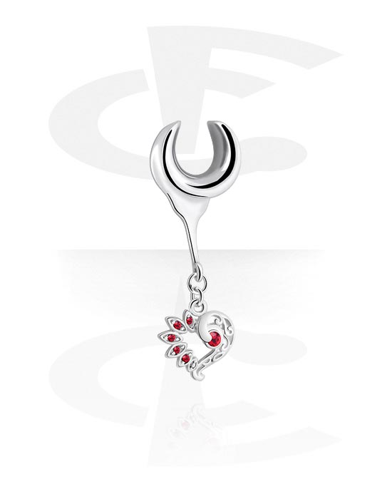 Puolitunneli (kirurginen teräs, hopea, kiiltävä pinta) kanssa sydänriipus ja kristallikivet