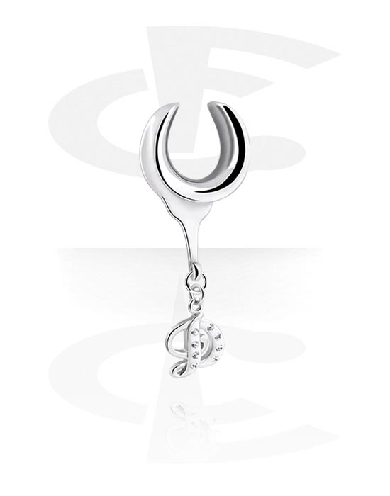 Puolitunneli (kirurginen teräs, hopea, kiiltävä pinta) kanssa riipus jossa D-kirjain ja kristallikivet