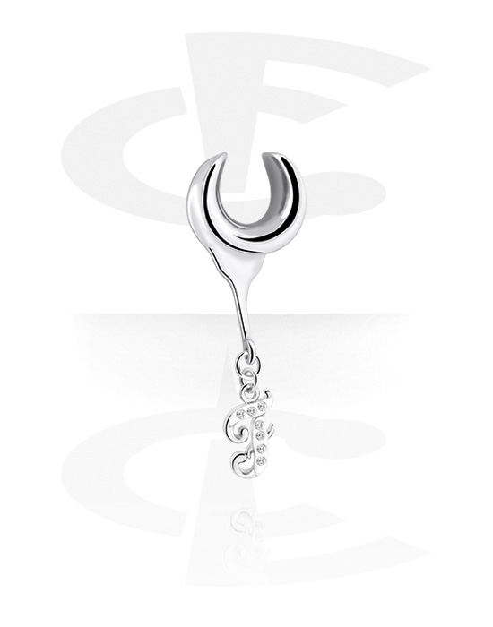 Puolitunneli (kirurginen teräs, hopea, kiiltävä pinta) kanssa riipus jossa F-kirjain ja kristallikivet