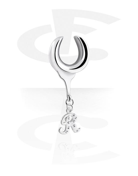 Puolitunneli (kirurginen teräs, hopea, kiiltävä pinta) kanssa riipus jossa R-kirjain