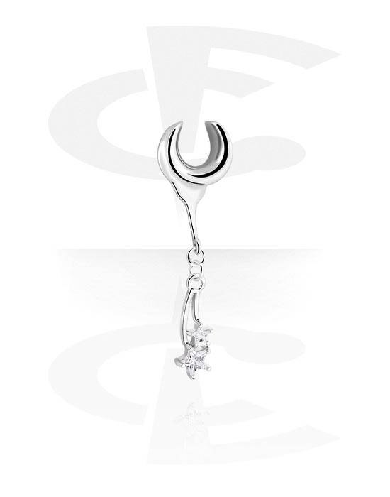 Puolitunneli (kirurginen teräs, hopea, kiiltävä pinta) kanssa tähtiriipus ja kristallikivet