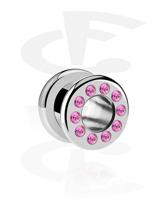 Ruuvattava tunneli (kirurginen teräs, hopea, kiiltävä pinta) kanssa kristallikivet