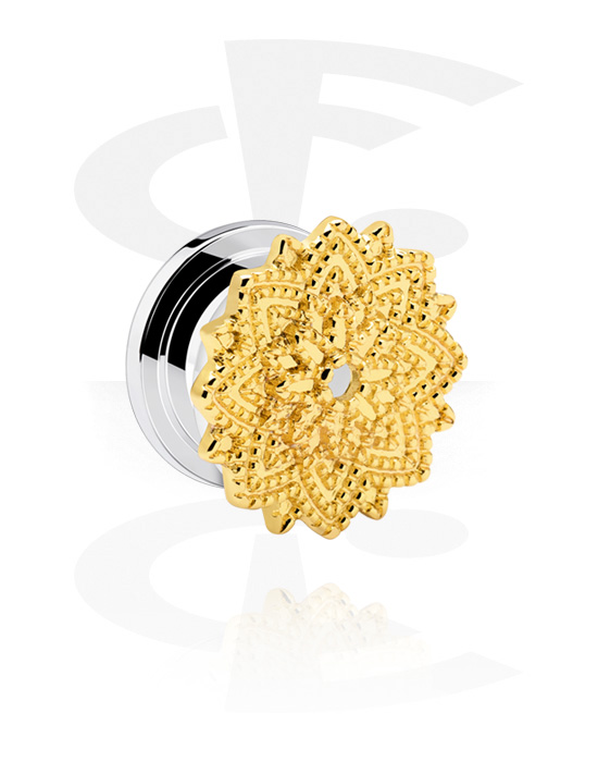 Ruuvattava tunneli (kirurginen teräs, hopea, kiiltävä pinta) kanssa Kultainen kukka -lisäosa