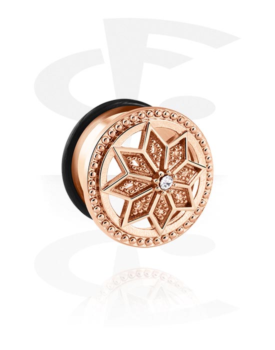 Yksinkertainen flared-tunneli (kirurginen teräs, ruusukulta, kiiltävä pinta) kanssa tähtidesign ja O-rengas