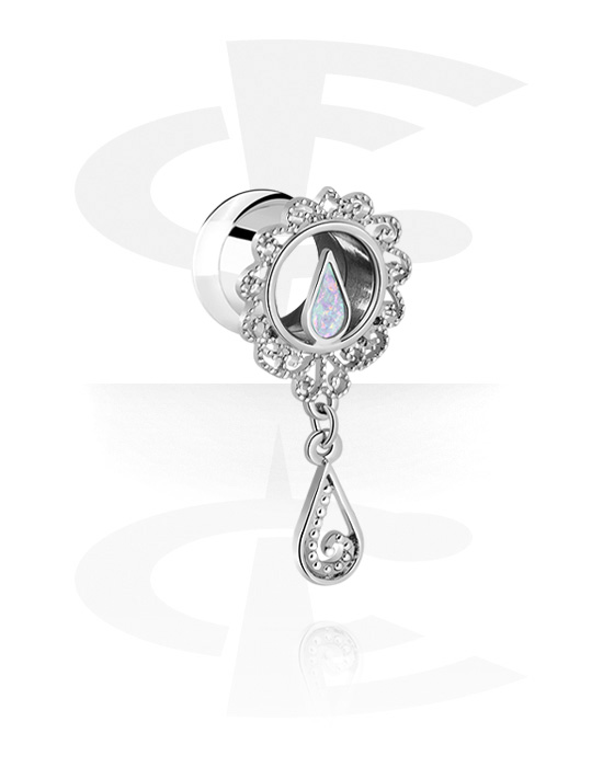 Kaksinkertainen flared-tunneli (kirurginen teräs, hopea, kiiltävä pinta) kanssa helmiäisjäljitelmäupotus ja riipus