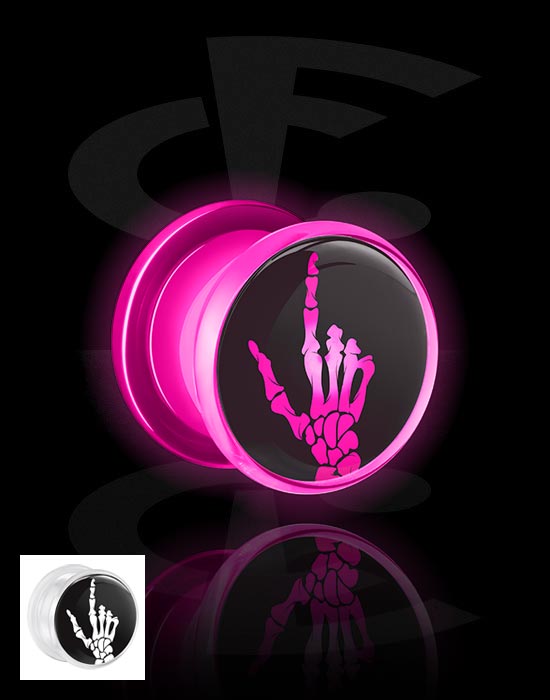 Ruuvattava tunneli (akryyli, valkoinen) kanssa LED-lisäosa ja luurankokäsi-design