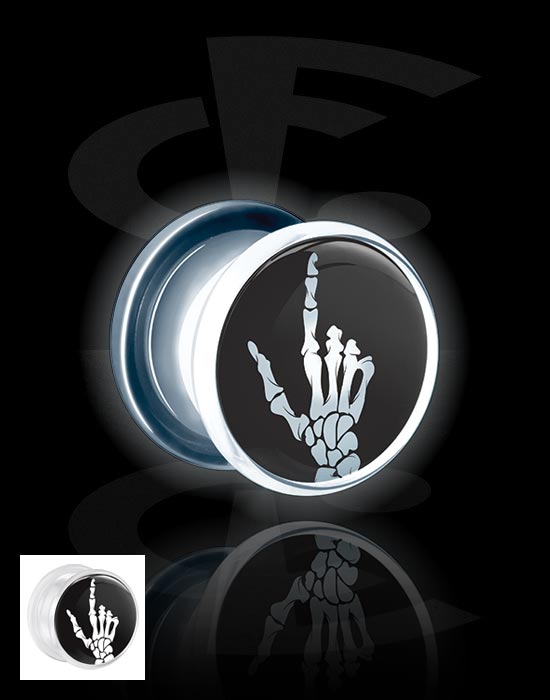 Ruuvattava tunneli (akryyli, valkoinen) kanssa LED-lisäosa ja luurankokäsi-design