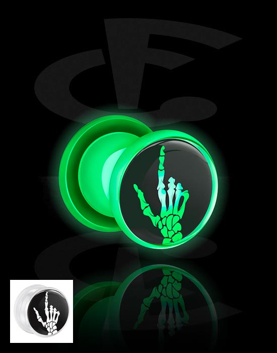 Ruuvattava tunneli (akryyli, valkoinen) kanssa LED-lisäosa ja luurankokäsi-design